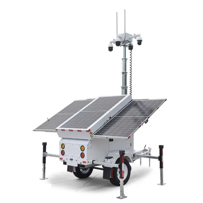 A typical unit is a solar-powered trailer with a telescoping mast carrying PTZ and fixed cameras, optional license-plate readers (LPR), a loudspeaker for audio talk-down, and high-intensity LED lighting. Connectivity is handled via LTE/5G or satellite (e.g., Starlink), with remote monitoring and event alerts available 24/7. Because they’re portable, you can reposition them for special projects, seasonal peaks, or evolving risk zones.